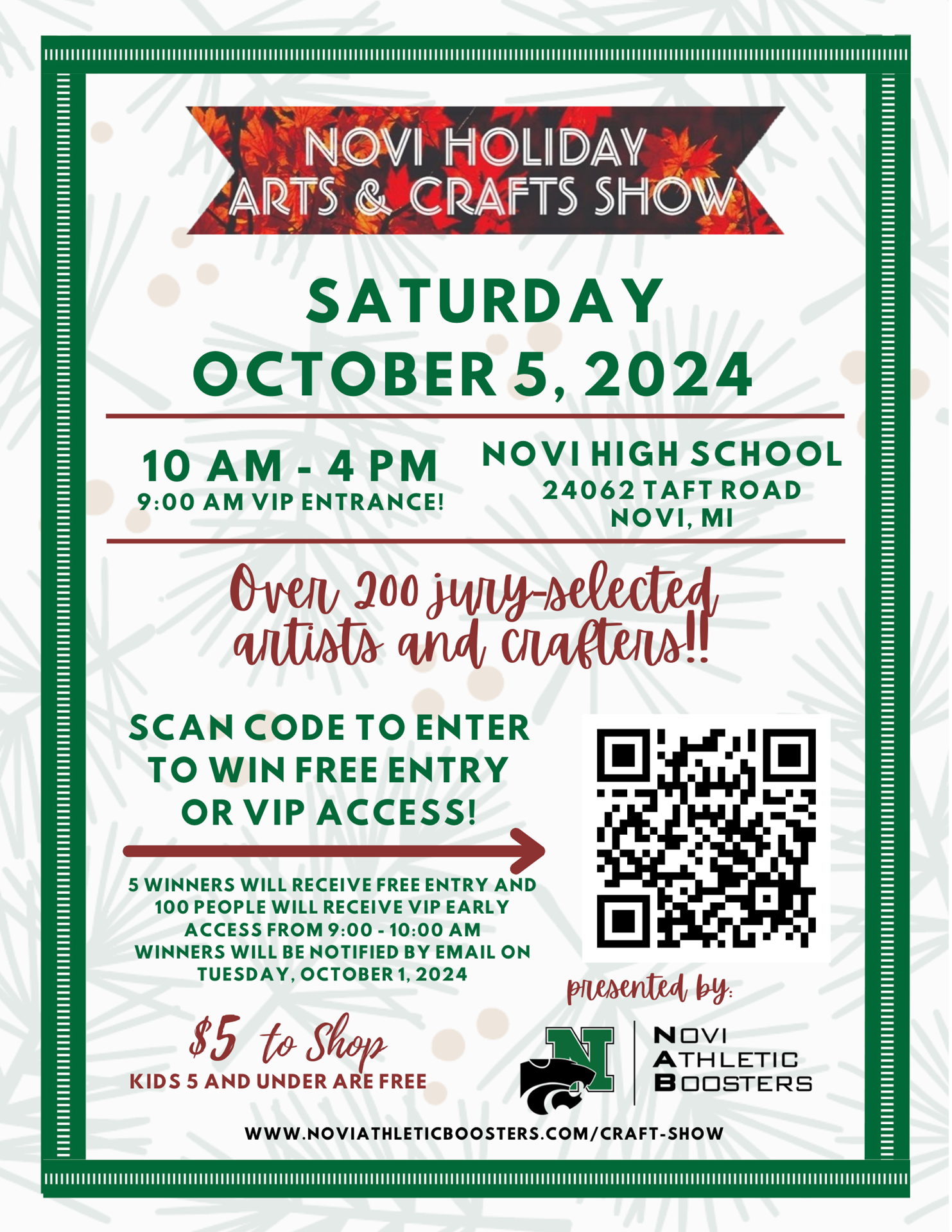 We are excited to announce our upcoming craft show, a fantastic event that brings together local artisans and supports our athletic boosters at both the middle and high school levels! This year the show will be held on Saturday, October 5. This is a great opportunity to shop unique, handmade goods while directly contributing to our students' athletic programs as all proceeds benefit the Novi Athletic Boosters. Be sure to check out the