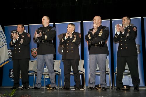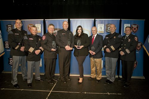 On Thursday, March 5, the Novi Police and Fire Departments held their Annual Awards Ceremony to celebrate accomplishments and recognize professional development achievements of those who protect and serve the community. During the ceremony both departments recognized the Firefighter of the Year, Police Department Civilian Employee of the Year, Police Officer of the Year, and Public Safety Volunteer of the Year.