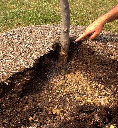 - It is not too late to correct a bad situation caused by previous poor mulching practices. See the video here for how to correct a tree with chronically deep mulch.
