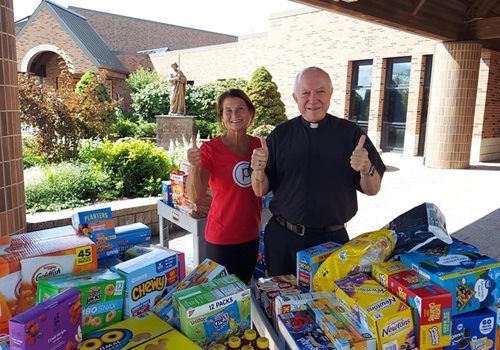Our Novi Town Center neighbor Walmart jumped on board too! They donated a substantial amount to help us fill the need at St. James. On Sept. 1, Pure Barre owner Bridget Stockton delivered the food donations to St. James. Fr. Ed Zaorski was so pleased and thrilled. St. James feeds 35 in need families on a weekly basis. Just think how happy the children will be when they open their lunch boxes! Bridget wishes to thank ALL that contributed to this worthwhile endeavor!