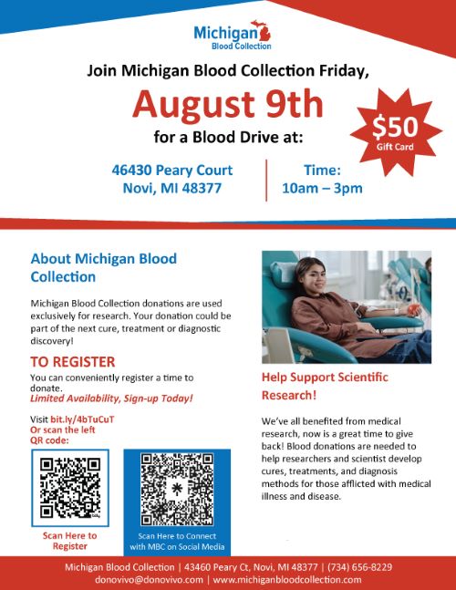 SW is hosting a blood drive for the Red Cross at our New Hudson, Michigan facility on April 4 ...